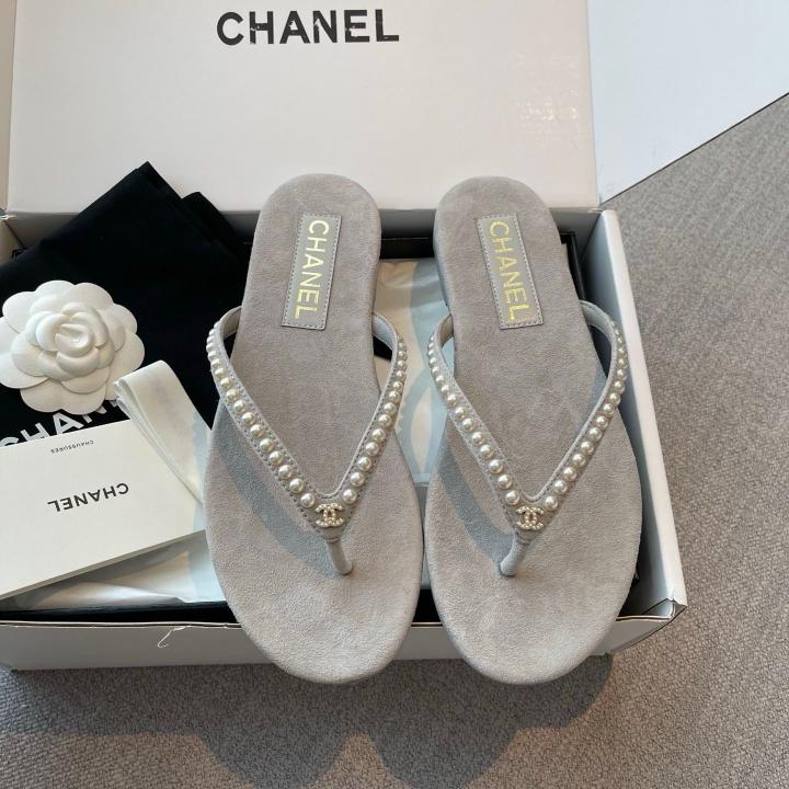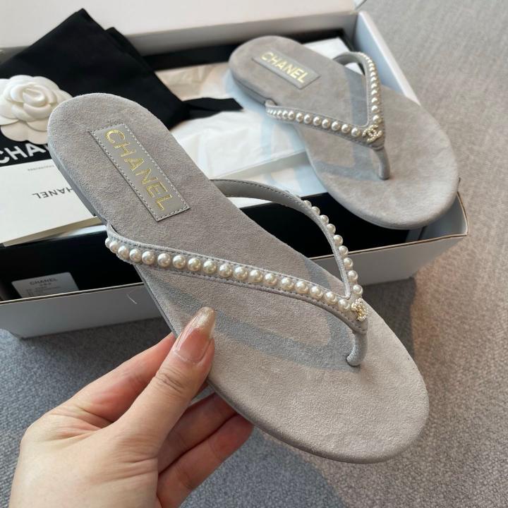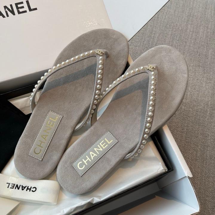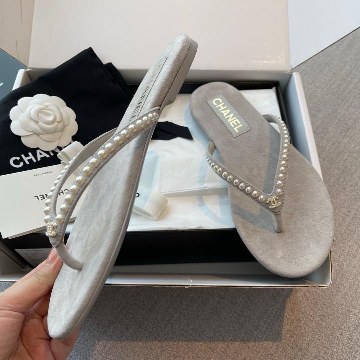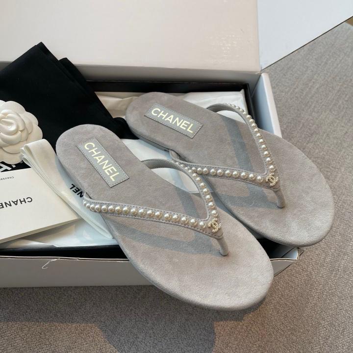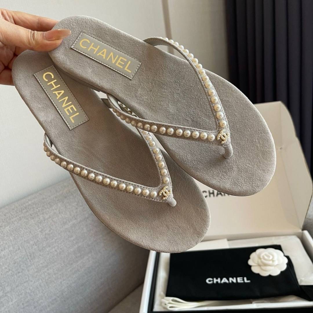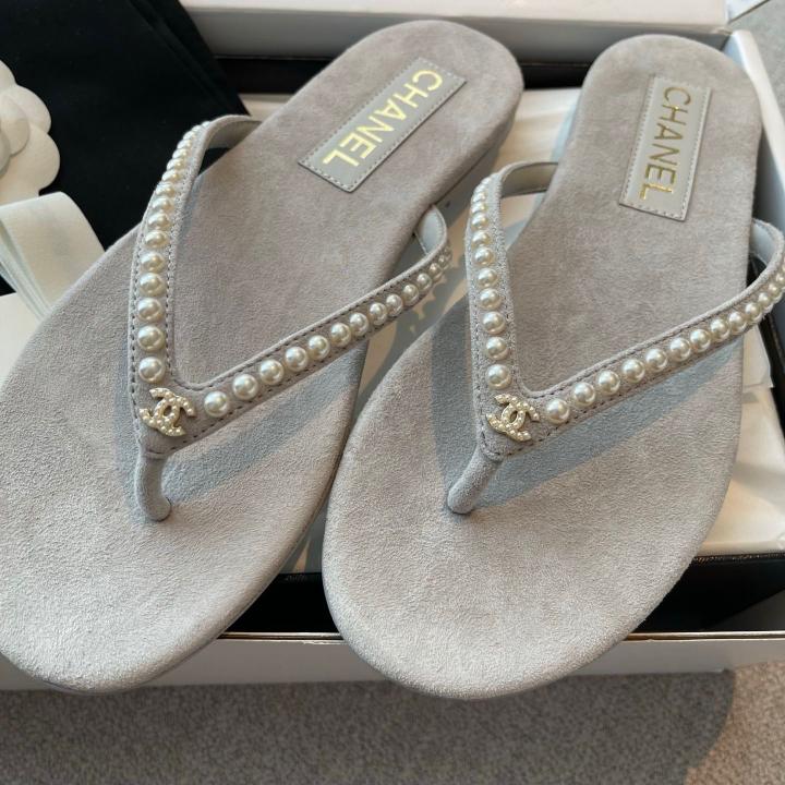Chanel_Pearl_Embellished_Velvet_Thong_With_Original_Box