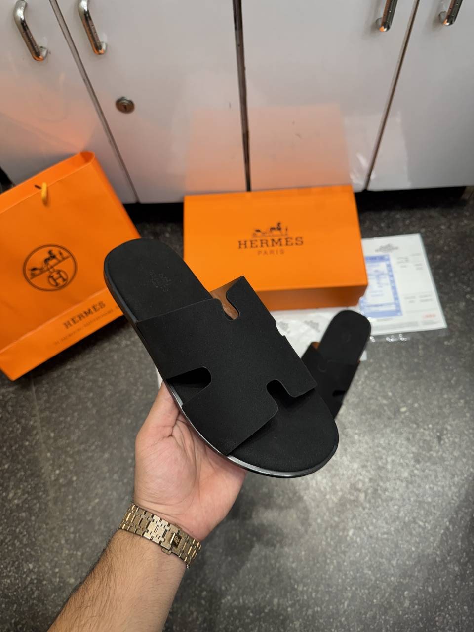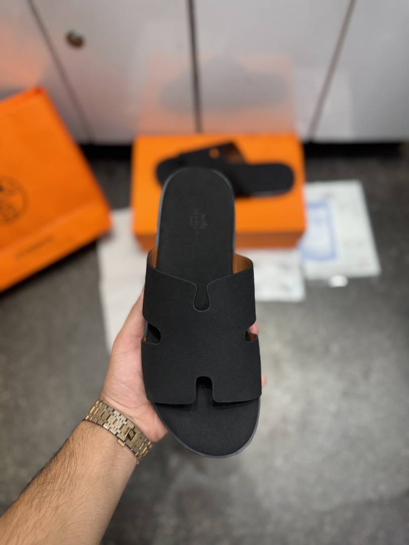 HERME.S IZMIR ITALIAN SLIDE BLACK SUEDE 019