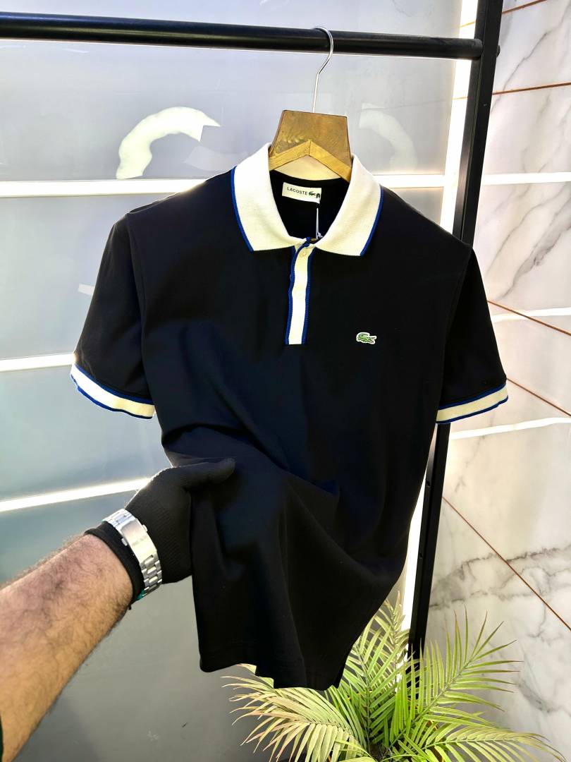 Lacost e Black Polo Premium Collar Neck T-shirt F2974-BL