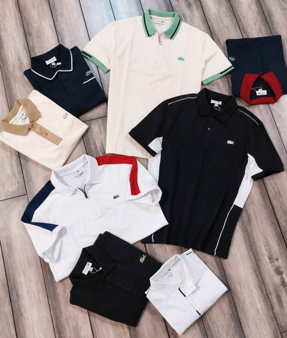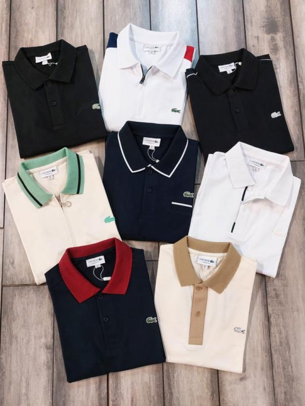 Lacost e Cream Premium Cotton Lycra Pique fabric Polo Tshirt with Collar Design and Embroidered Logo Zip Style 3387