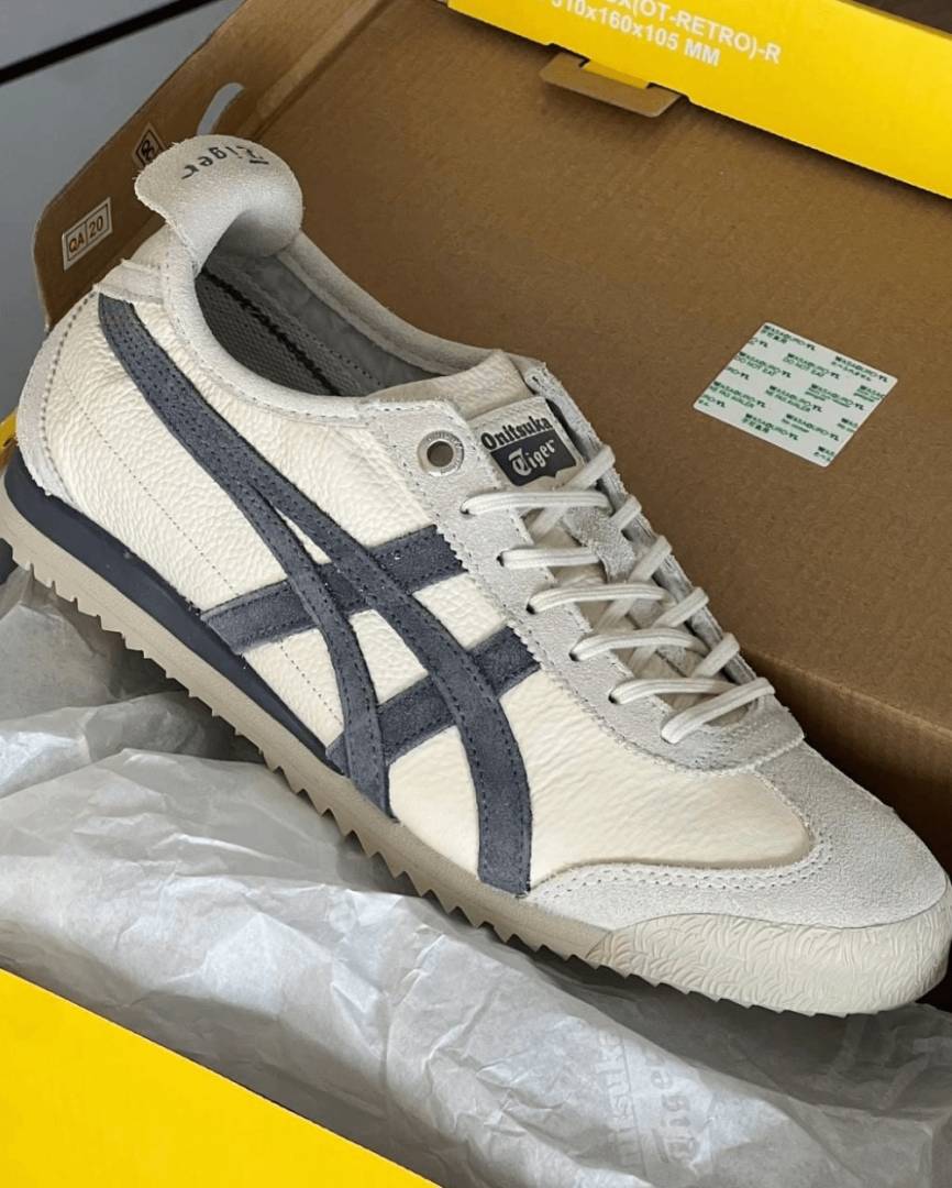 The Onitsuka Tiger Mexico 66 SD in "Birch/Metropolis" is the gold standard for understated elegance in the Super Deluxe (SD) lineup. This colorway features a warm, off-white "Birch" leather base accented by "Metropolis"?a deep, slate-grey shade?on the Tiger stripes. This 7A Premium Quality edition perfectly captures the "Old Money" aesthetic and the high-spec comfort upgrades that distinguish the SD series from the classic model.