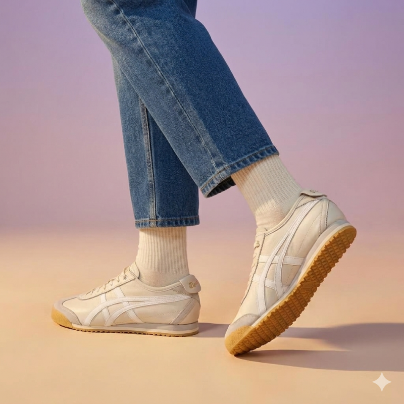 The leather in the SD series is noticeably softer and more "broken-in" than the standard Mexico 66 models. Cream & White Tonal Palette: A sophisticated, "quiet luxury" aesthetic.