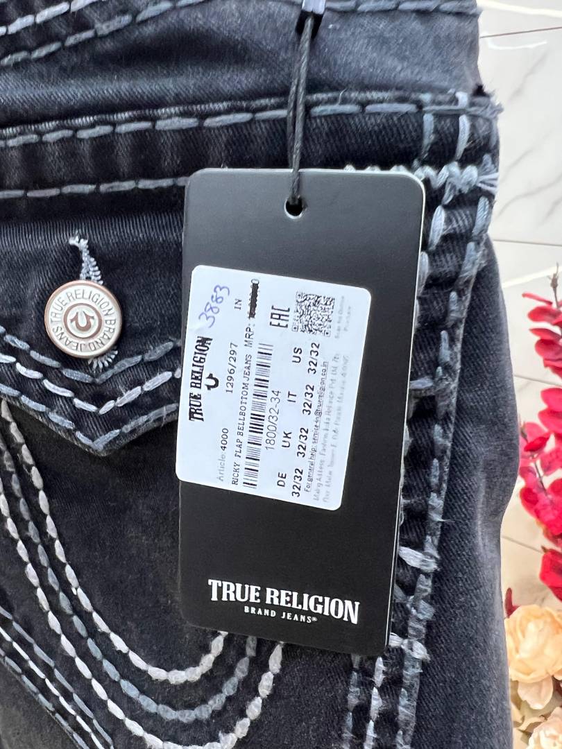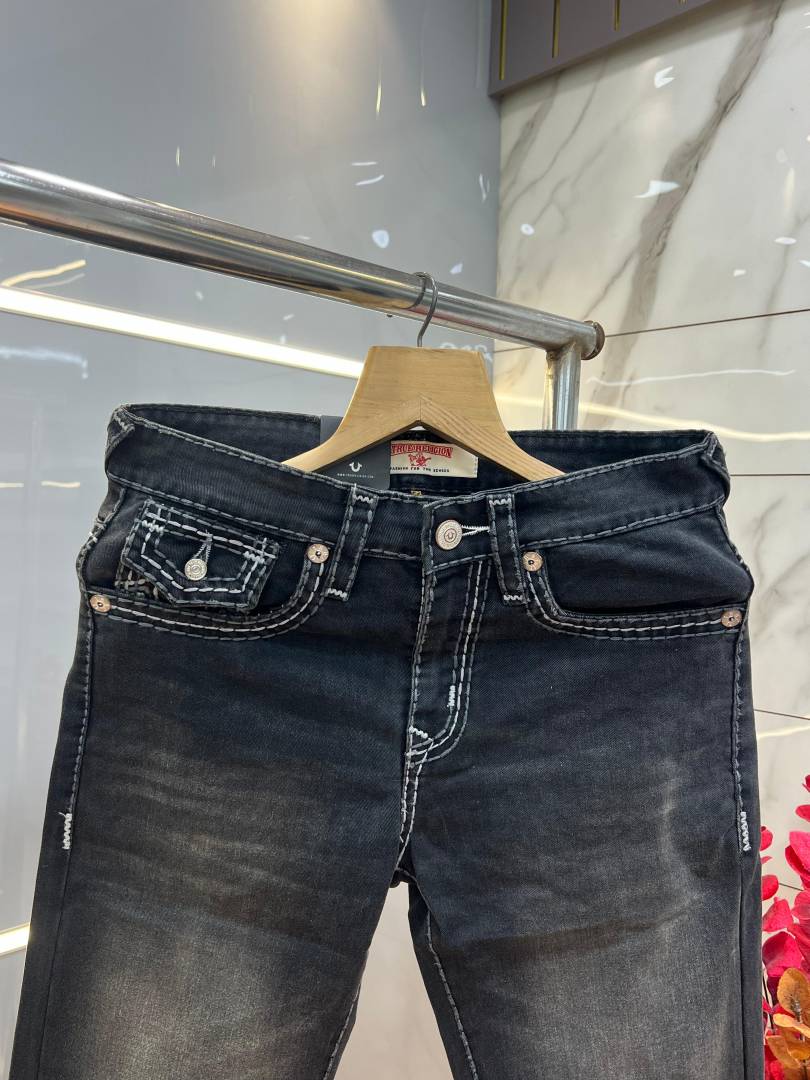 True Religio n Black Shade Boot cut Premium Imported Stretchable lycra fabric Denim with back flap pocket Design Denim3883
